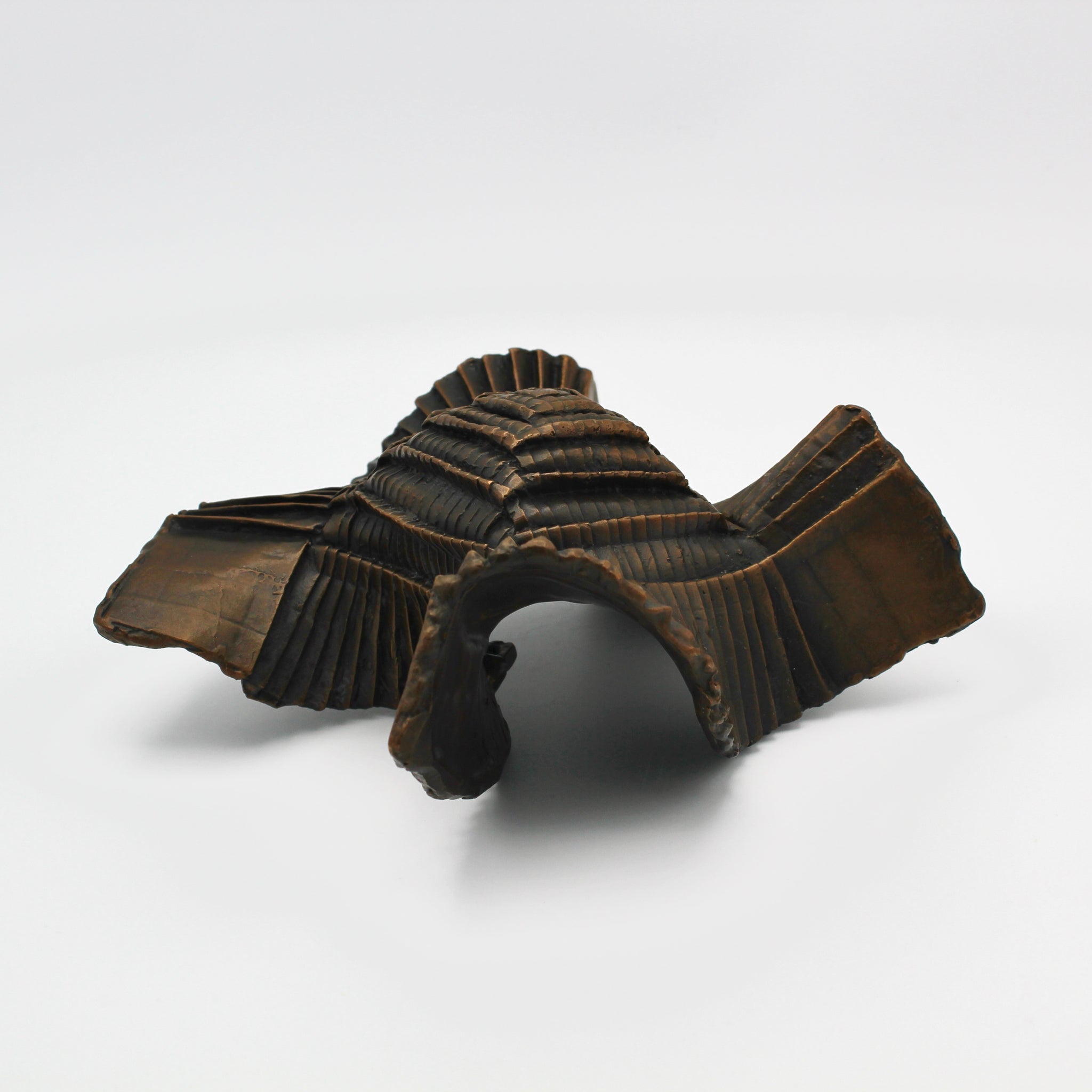 Goran Konjevod's sculptures transform encaustic paper—wax-infused for enhanced texture and durability—into organic, three-dimensional abstract forms through simple straight-line folds and pleats, drawing inspiration from origami, bamboo basketry, ceramics, and weaving. An expansion of Goran's usual work in paper, this piece is cast in bronze from a paperfolded pattern and measures about 8" x 8" x 3". PLEASE NOTE: this piece is currently being shown in our collaborative show with the Metal Arts Guild, "Bridging the Bay." It will be available to be shipped or picked up in store after the show closes on November 9th, 2025.