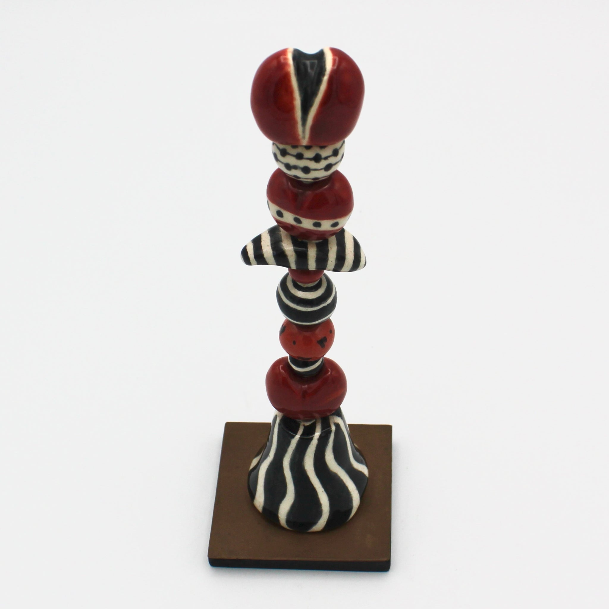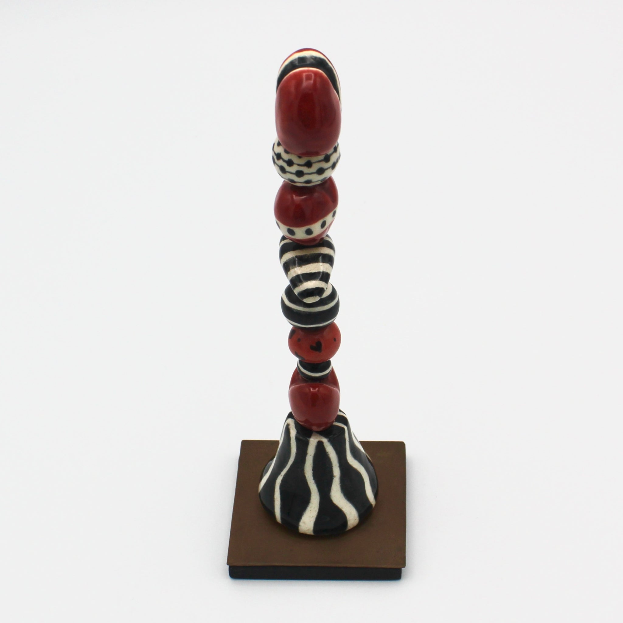 Gail Splaver always adds a touch of whimsy to her ceramics, whether it's in delicately painted porcelain jewelry, charming cat totems, or rustic trinket bowls. This darling hand painted heart totem is the perfect Valentine's gift. The base measures 2" x 2" and 6" in height.