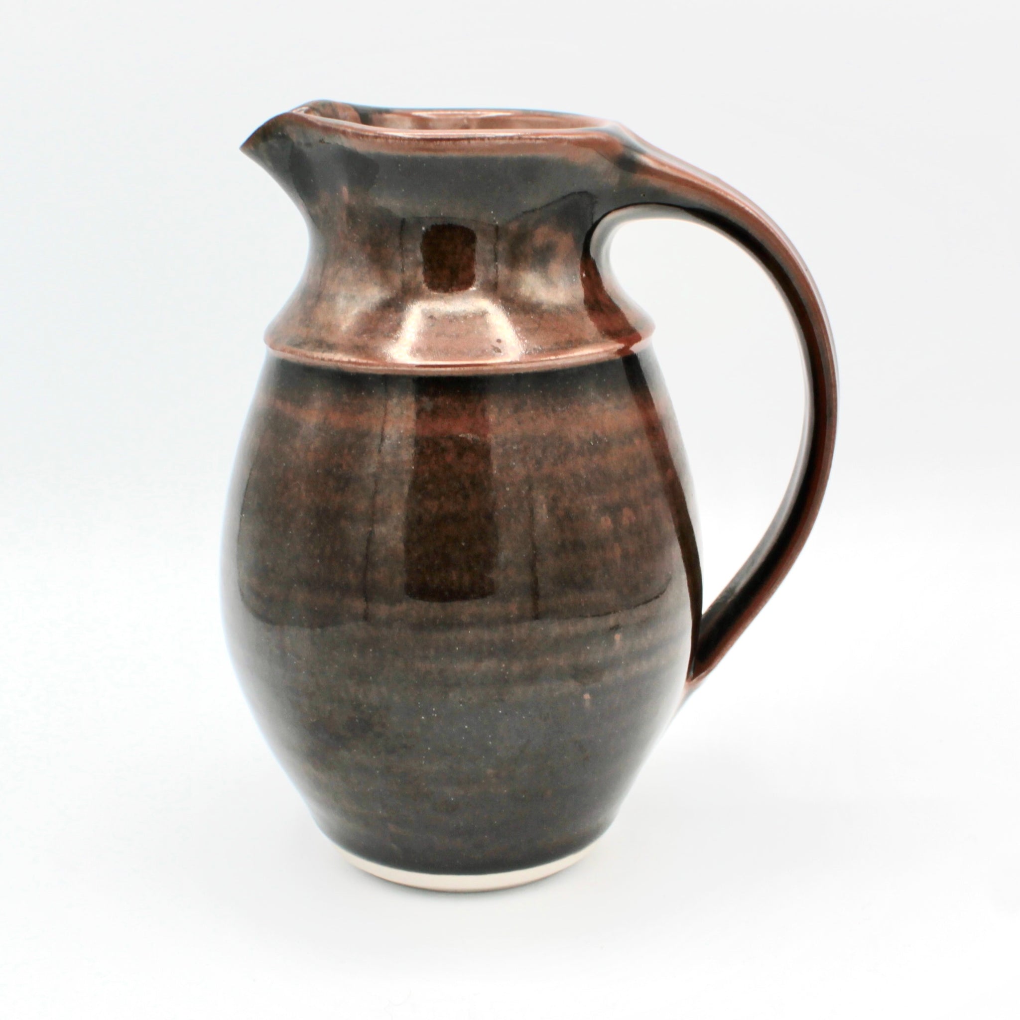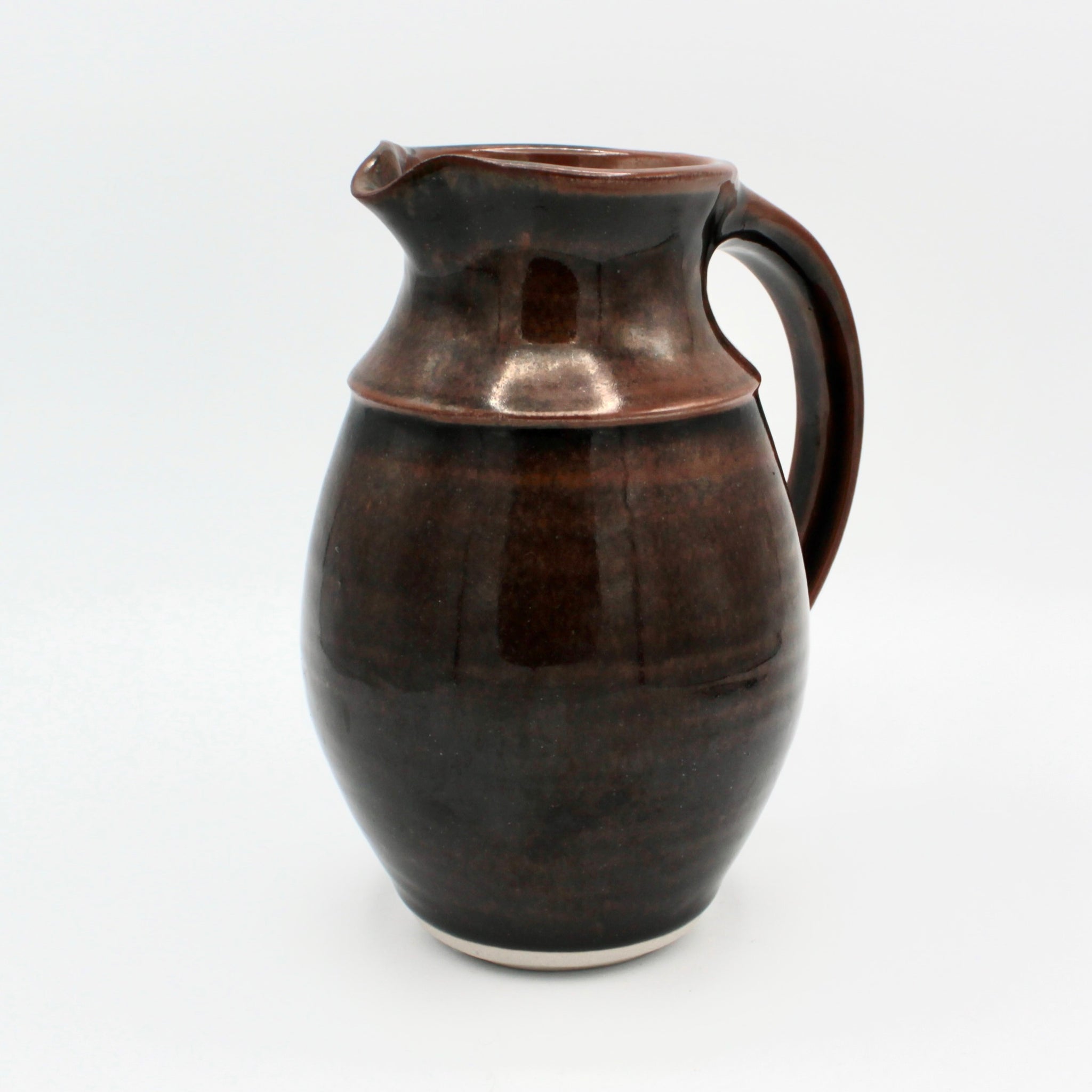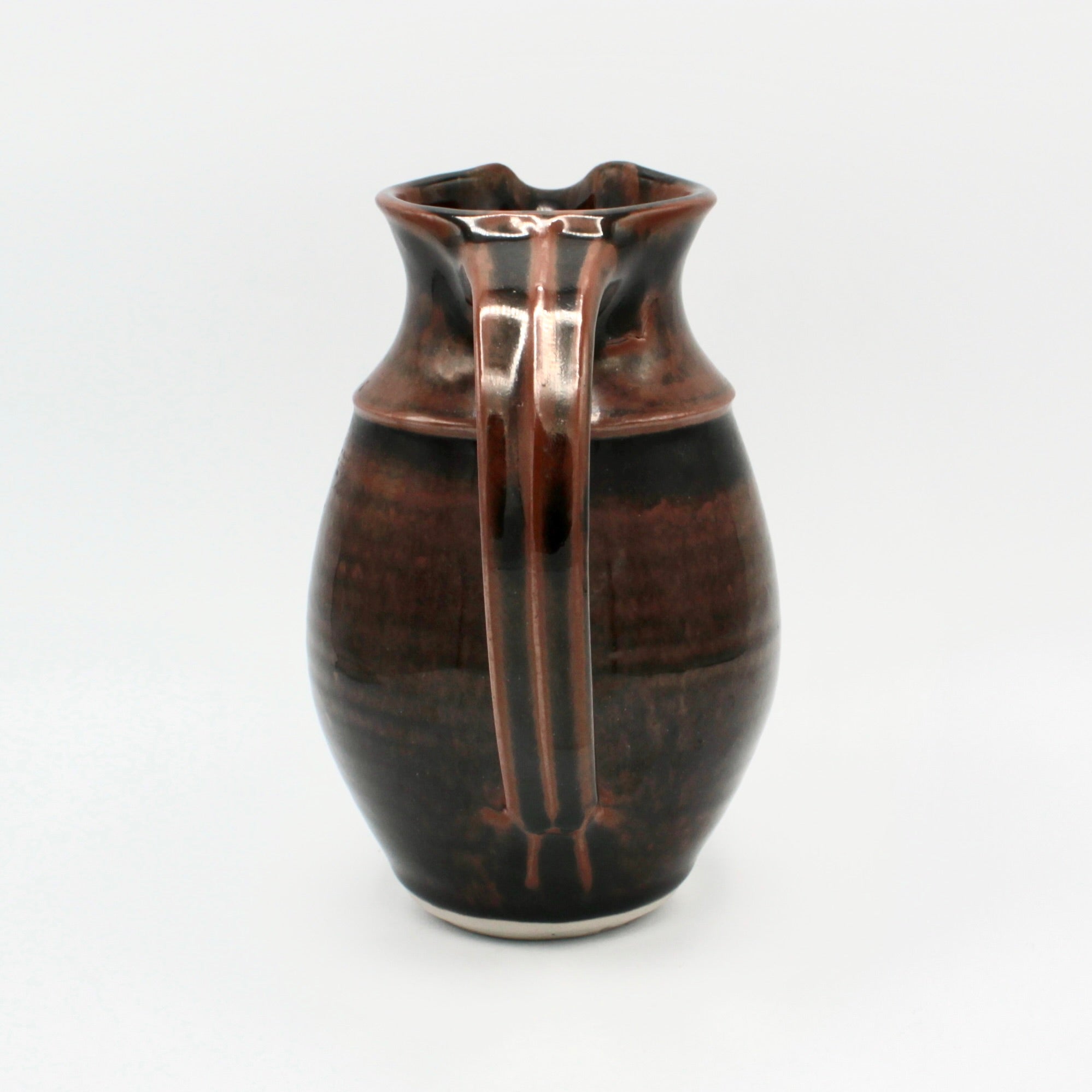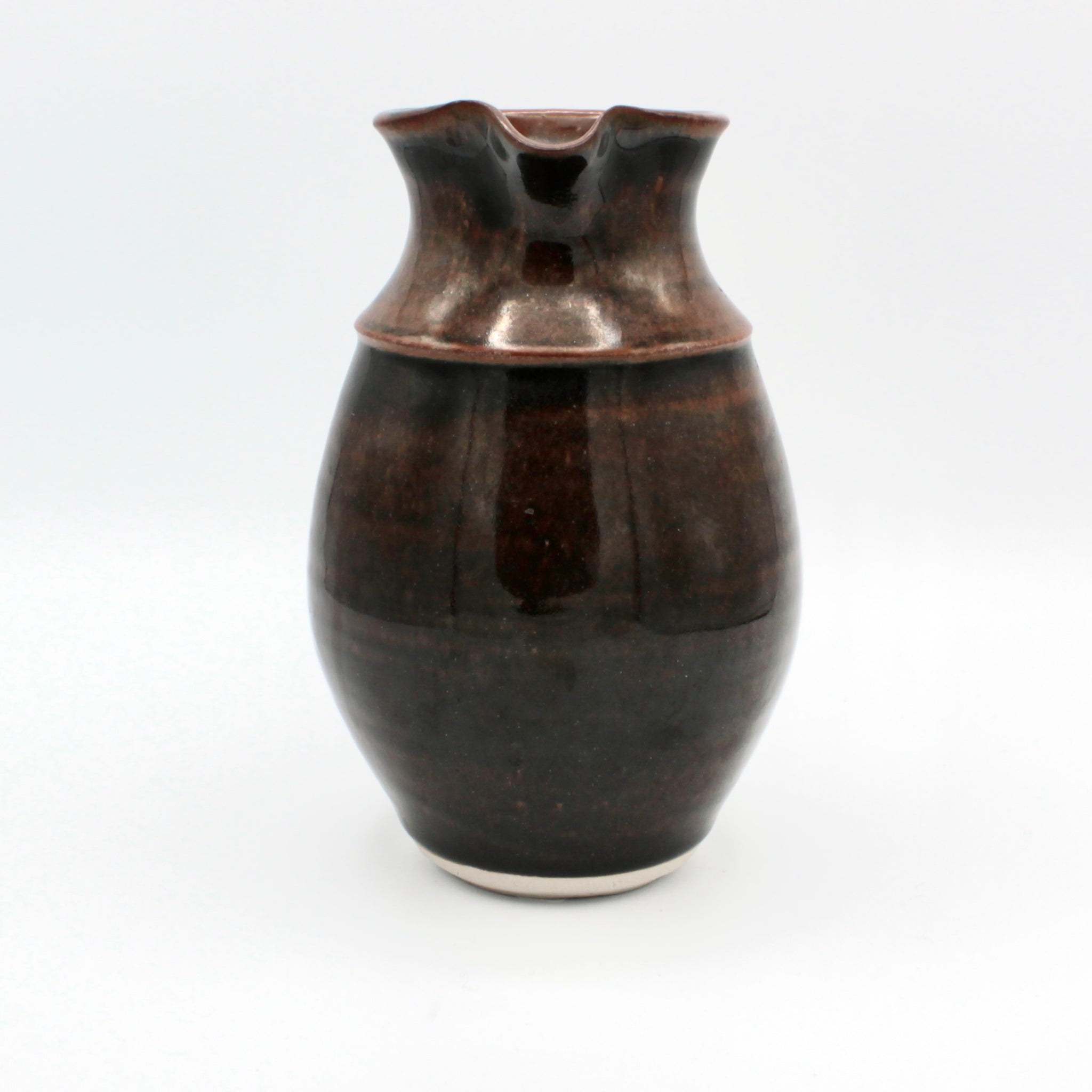 Longtime ACCI artist Susan Brody is back as a Holiday Guest Artist for the end of 2025! As ever, Brody's work is elegant, solid, and functional. This pitcher features a classic brown and black glossy glaze, and is perfect for drinks to share or as an elegant vase. It measures approximately 7.25" in height and 3" in diameter at its opening.