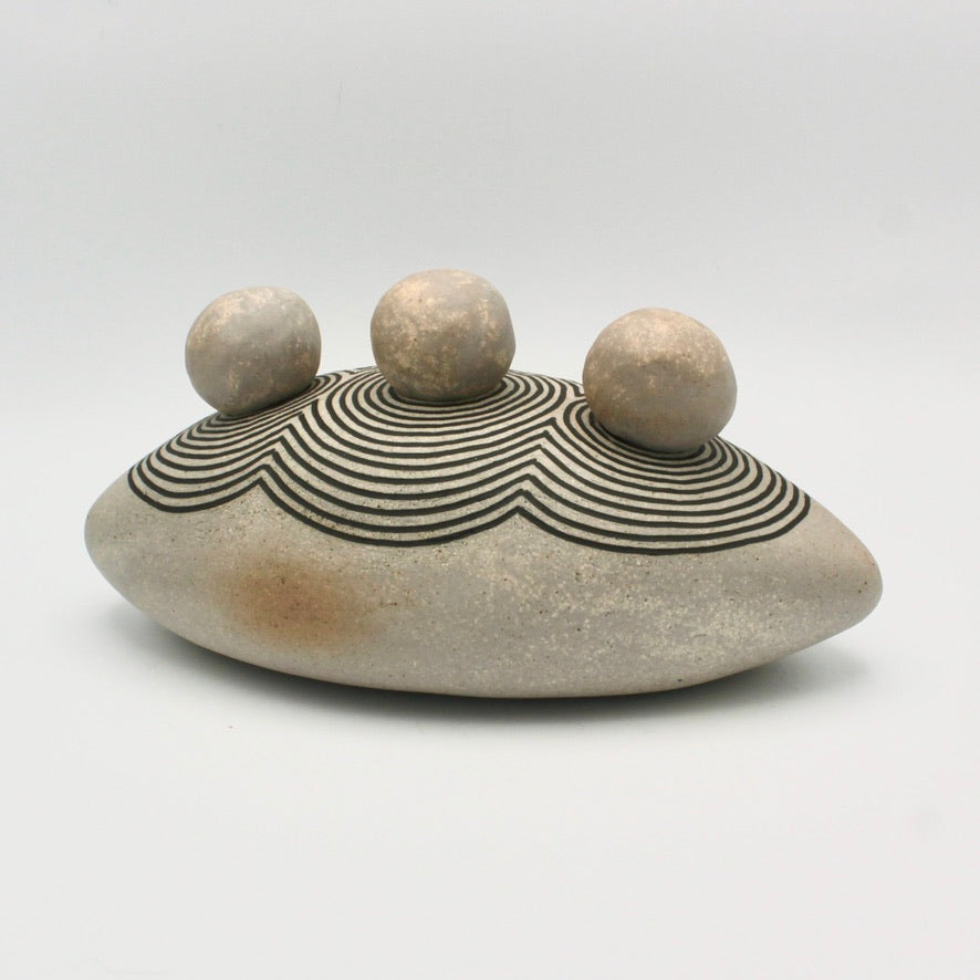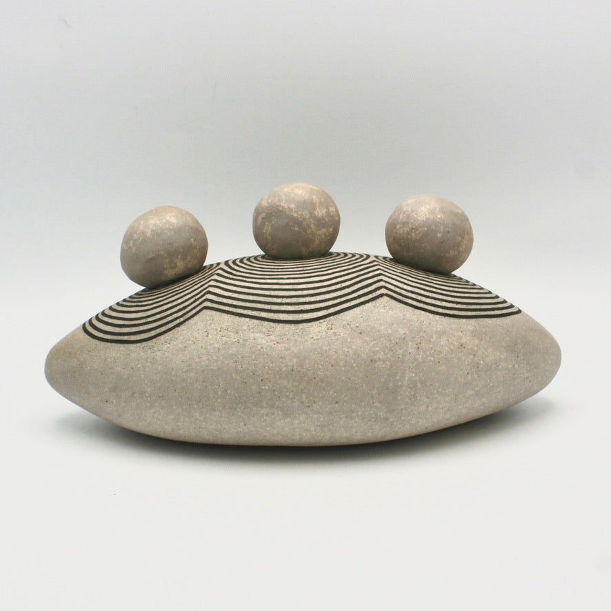 Oval Vessel With Three Rocks By Jennifer Joh