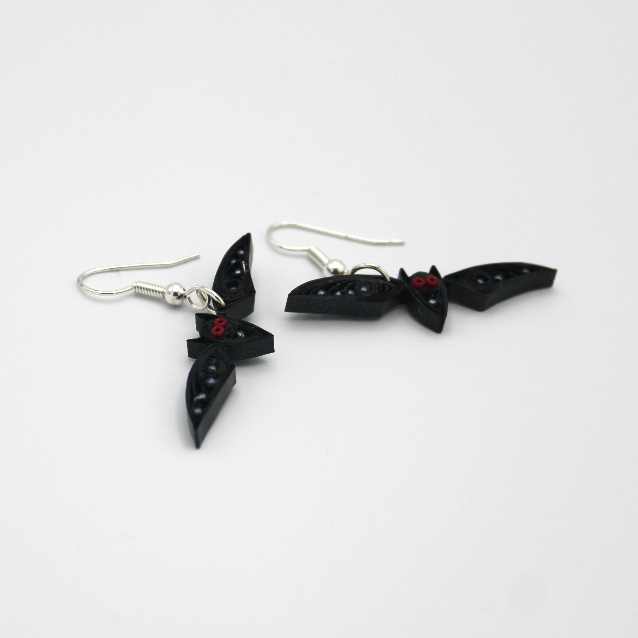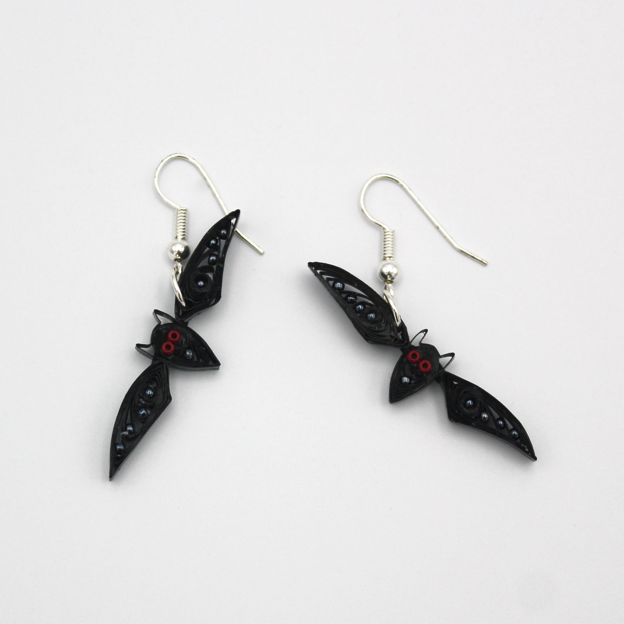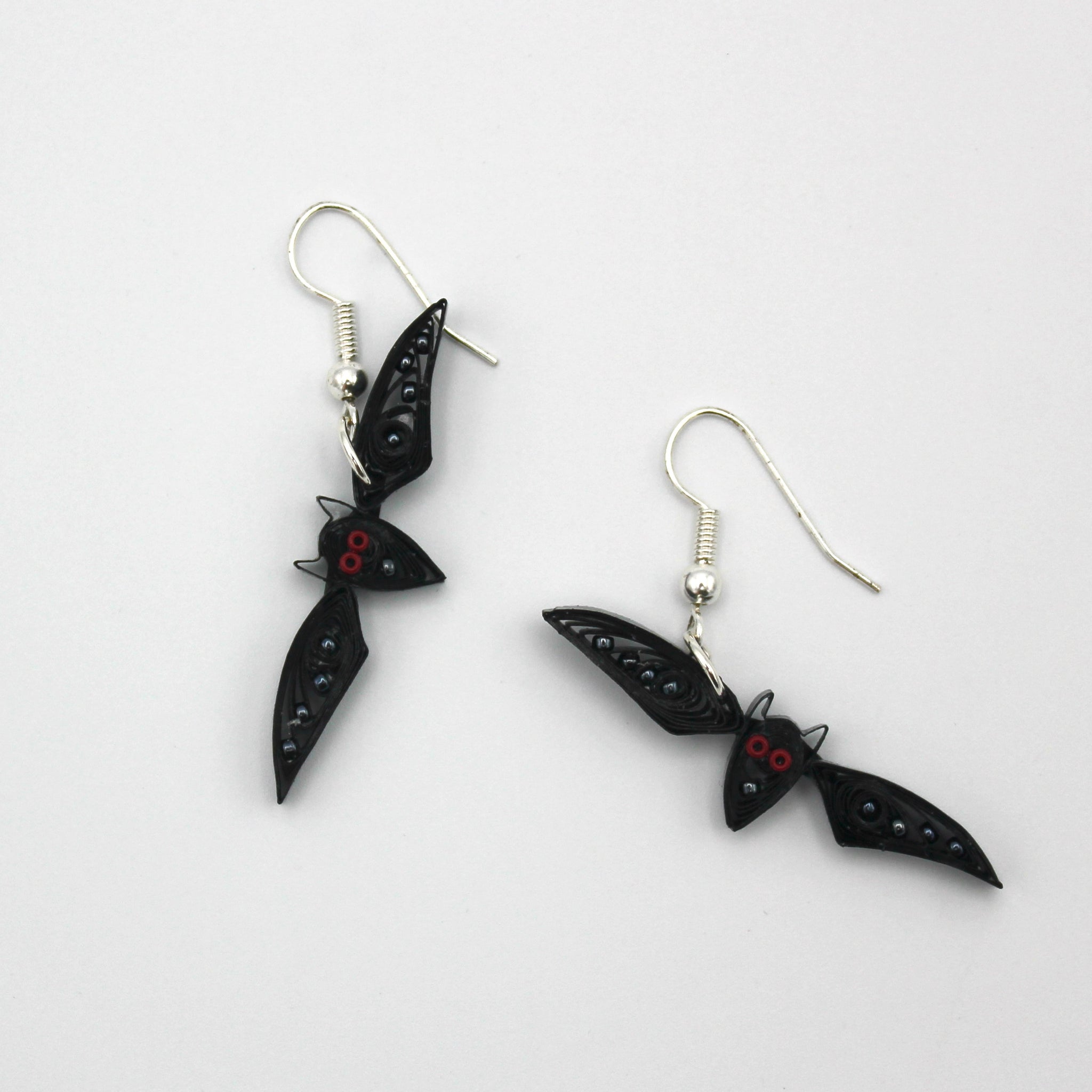 Paper Quilled Bat Earrings By Kathy Canfield Shepard