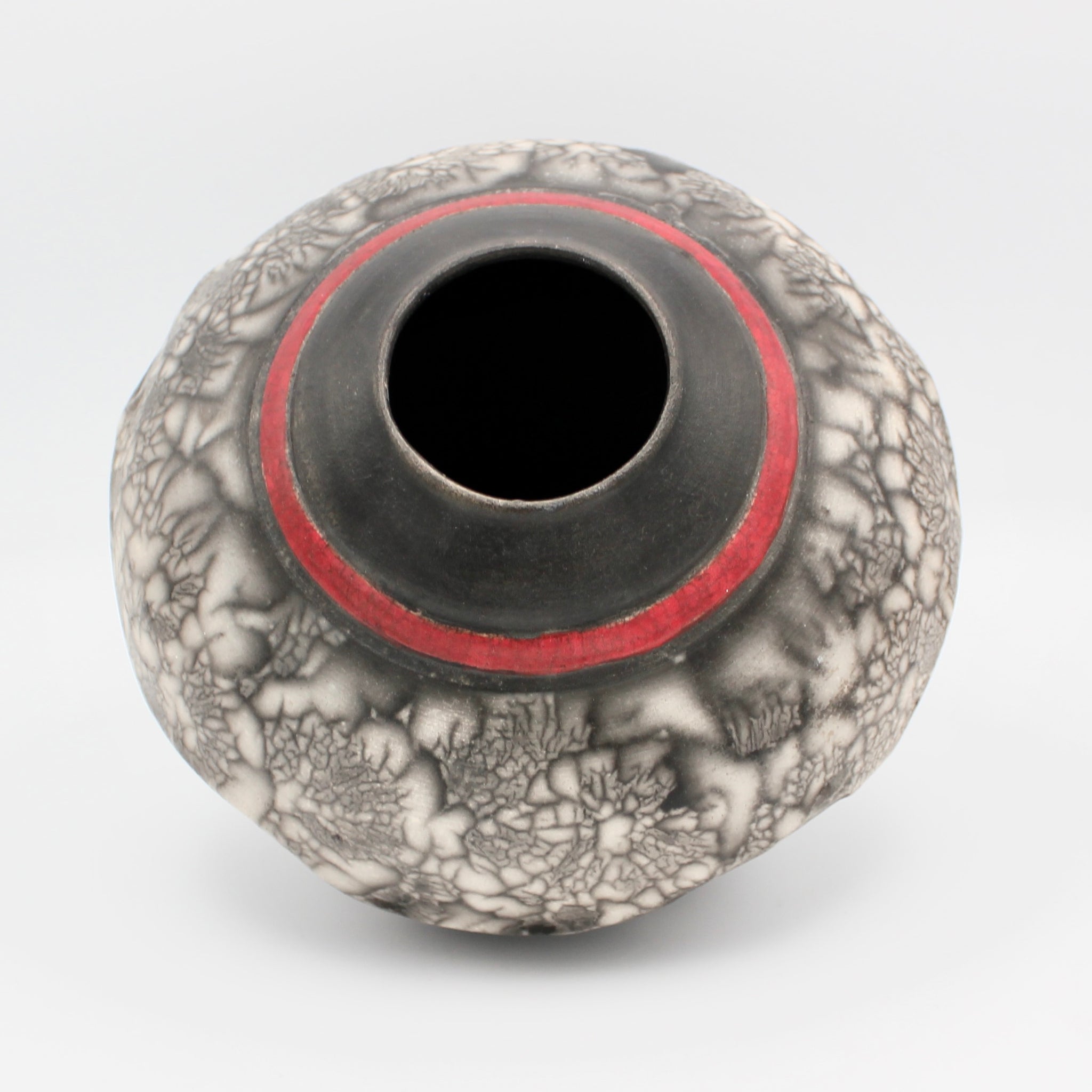 Raku Vessel With A Red Collar By Ruth Ehrenkrantz