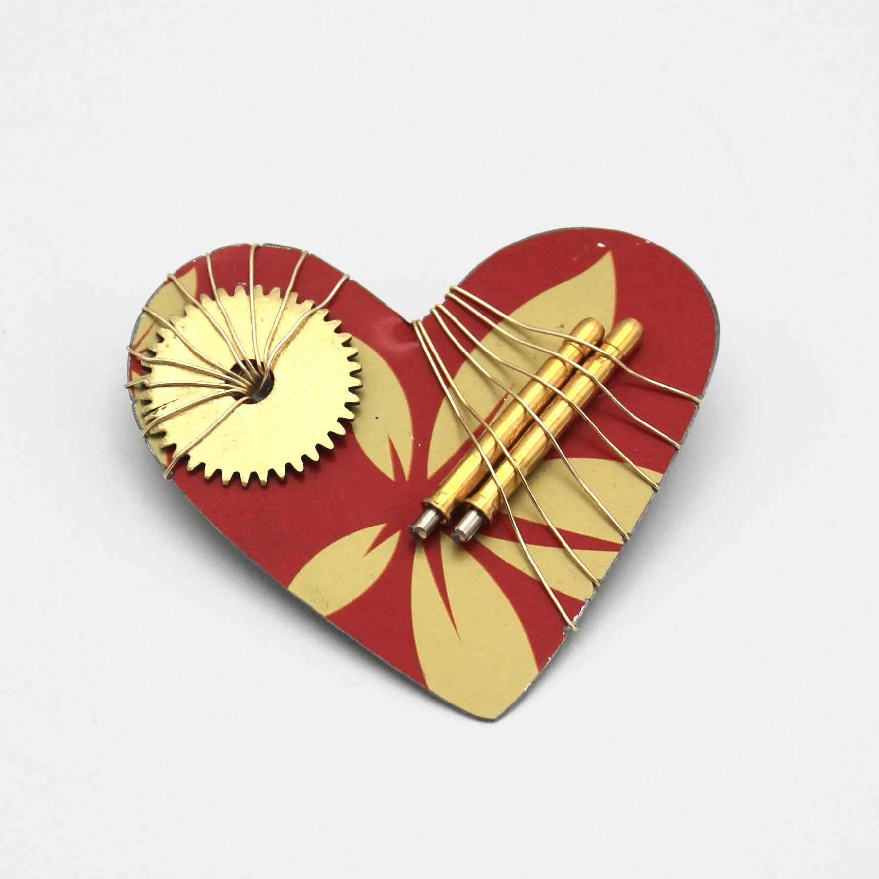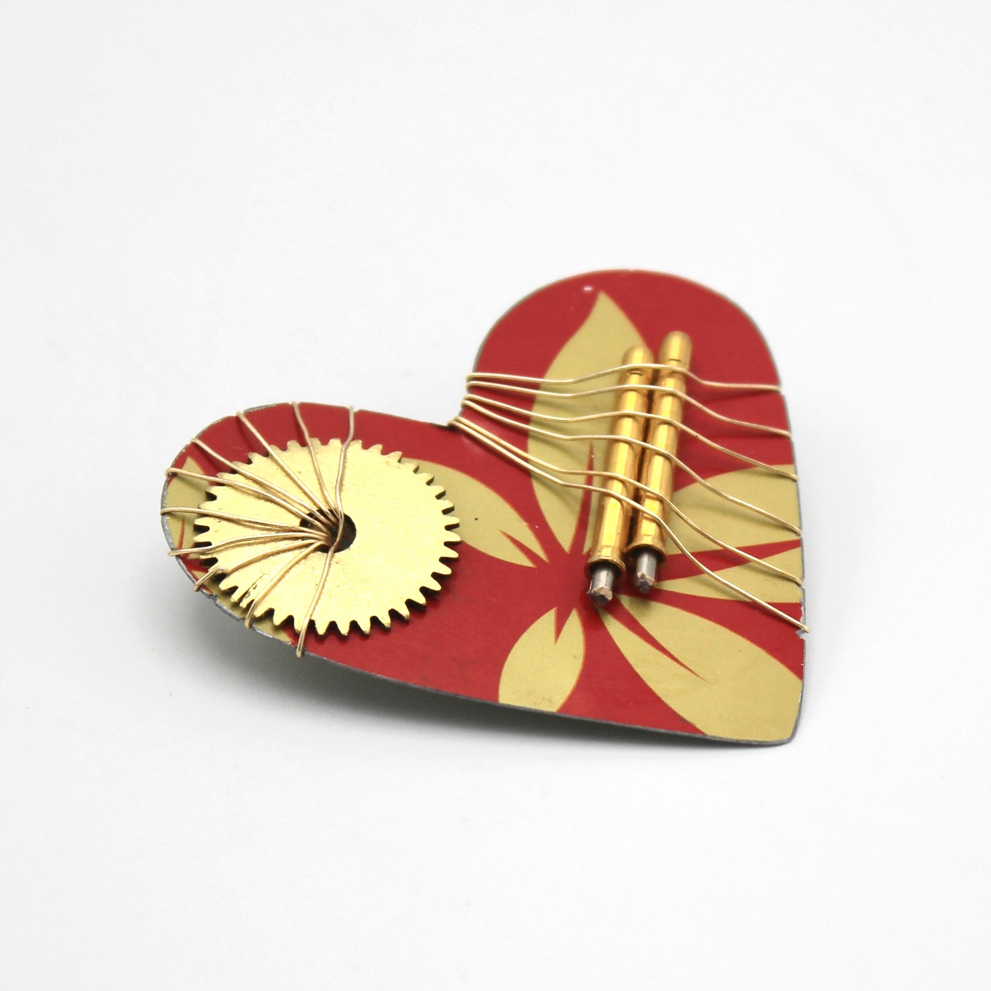 Red and Gold Recycled Heart Pin By Irene Storch