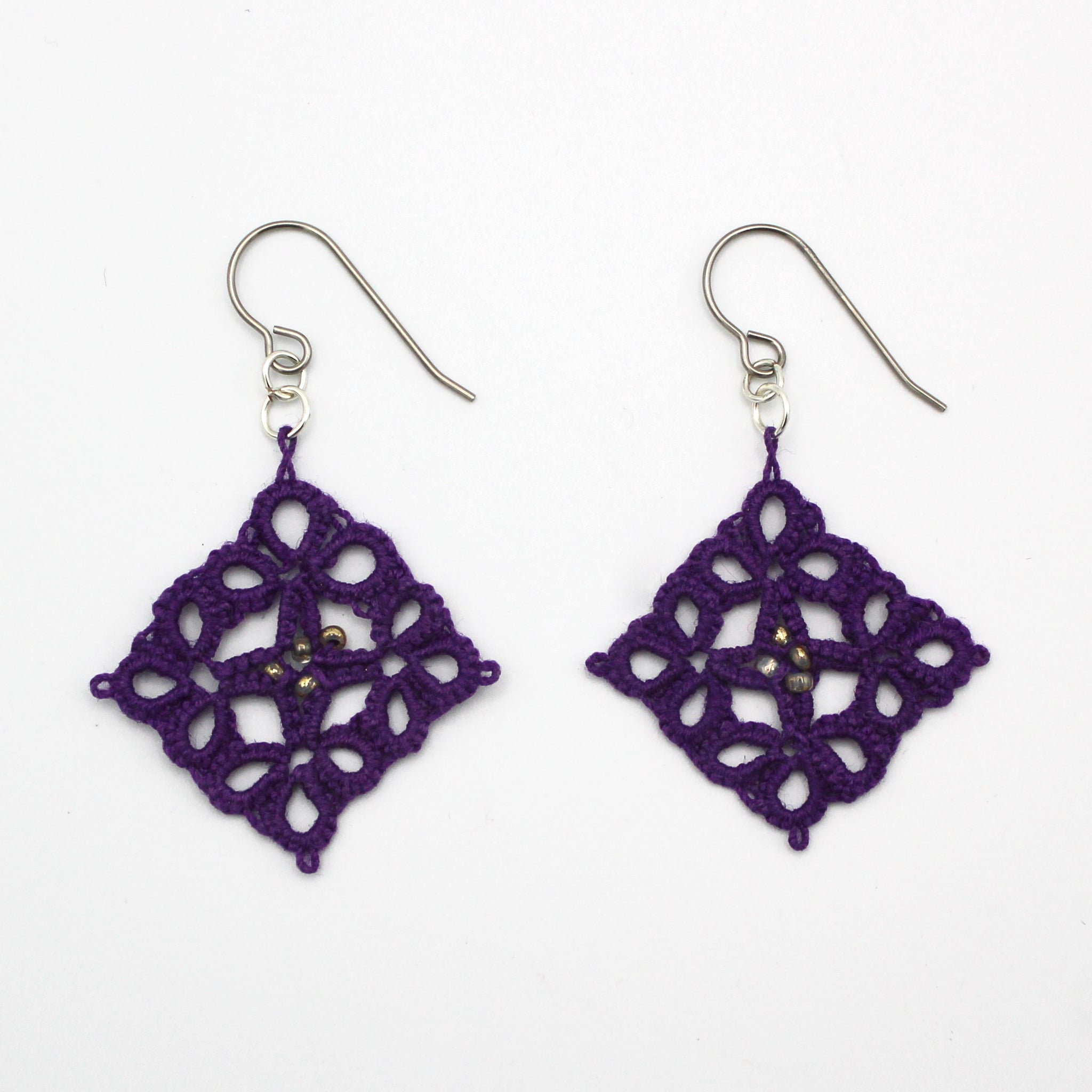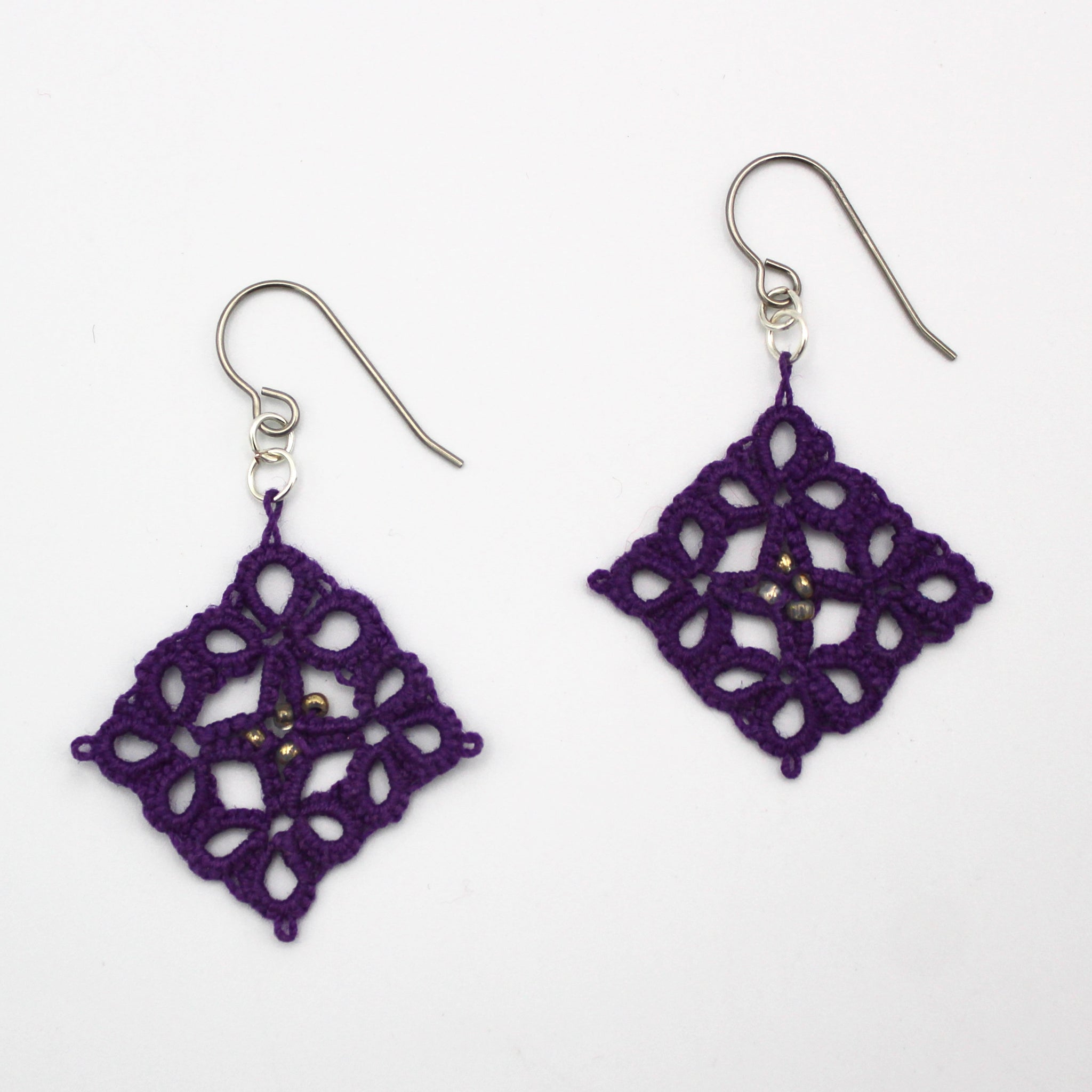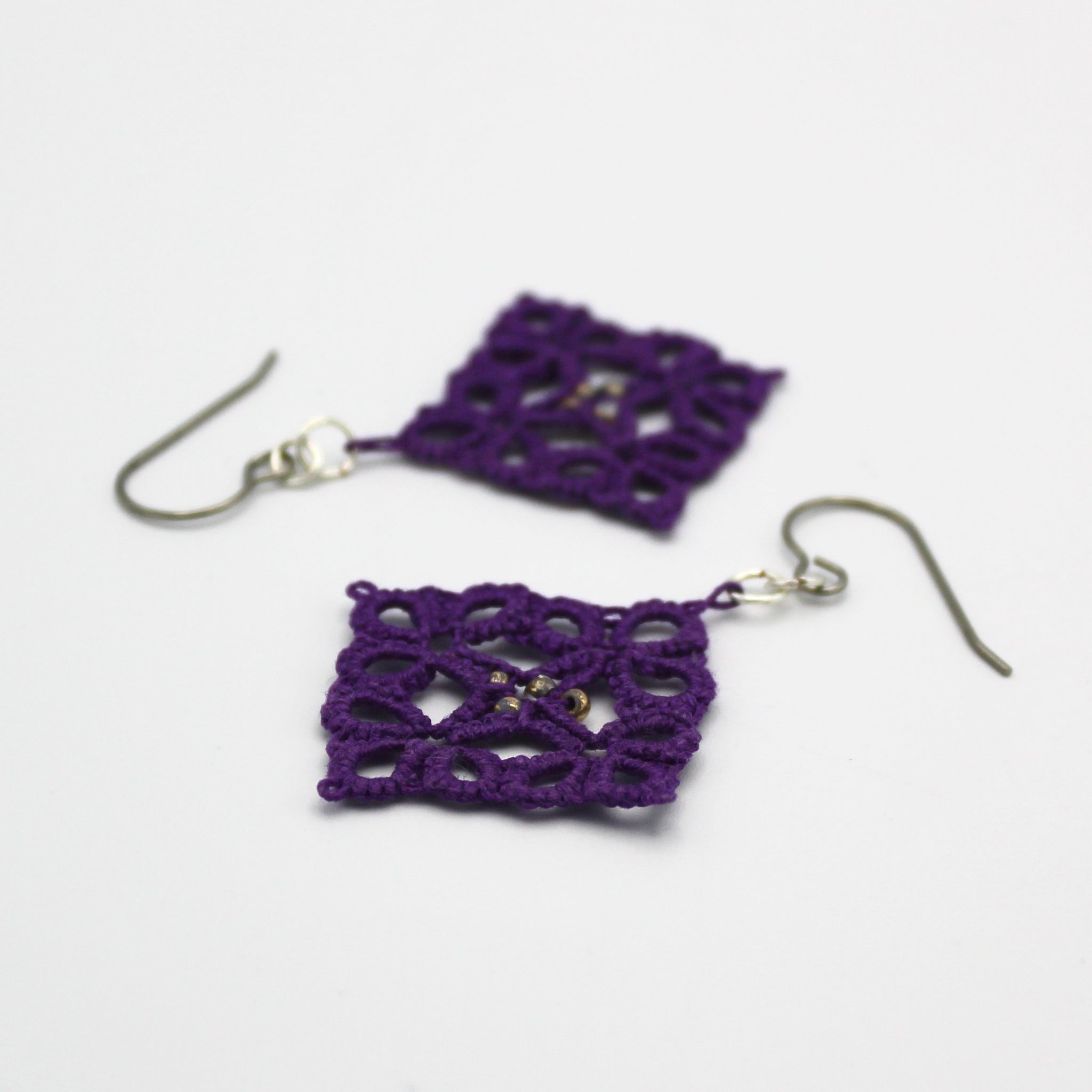 Square Purple Tatted Earrings By Eva Pearlingi