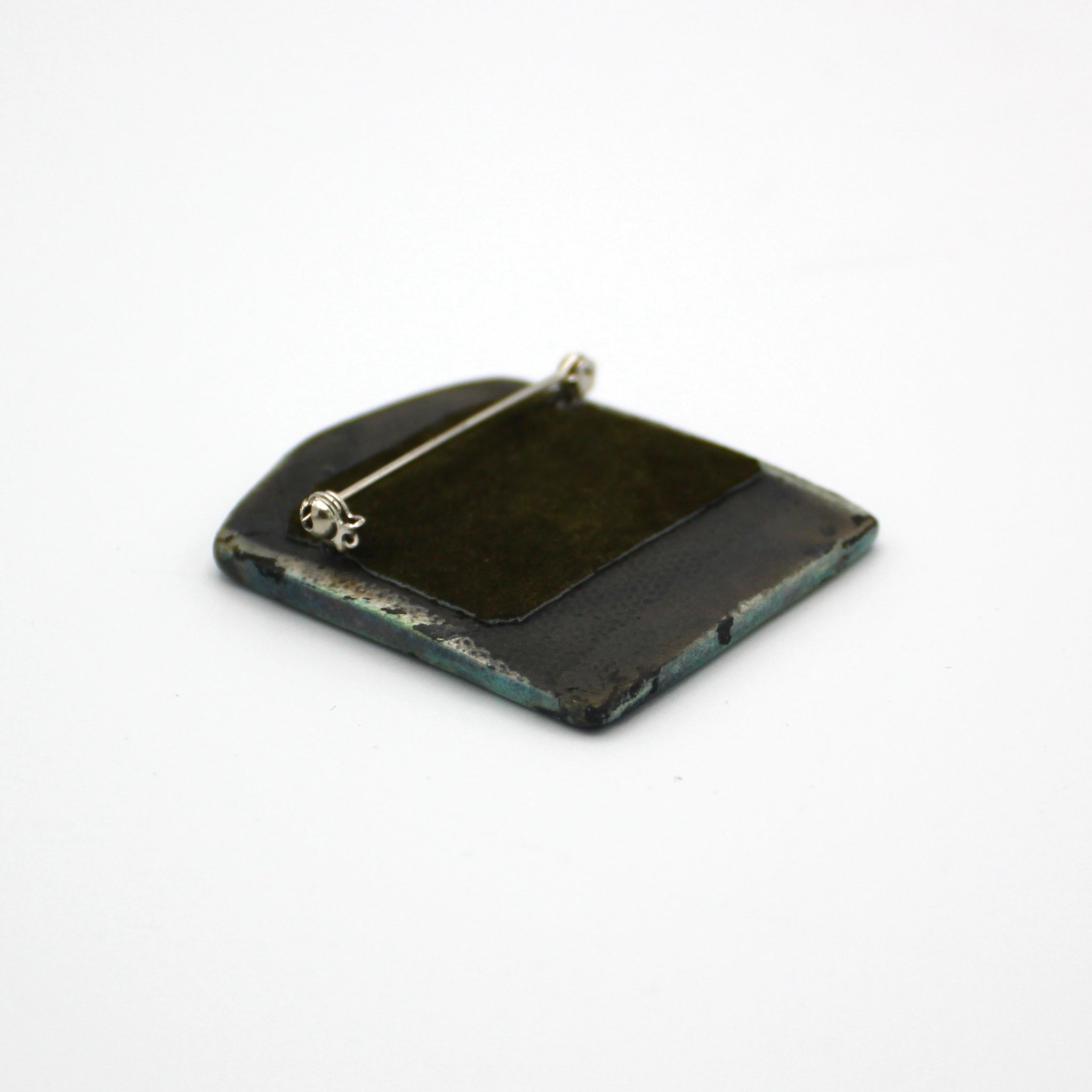 Gail Splaver always adds a touch of whimsy to her ceramics, whether it's in delicately painted porcelain jewelry, charming cat totems, or rustic trinket bowls. This darling hand painted brooch measures 2 x 1.5".